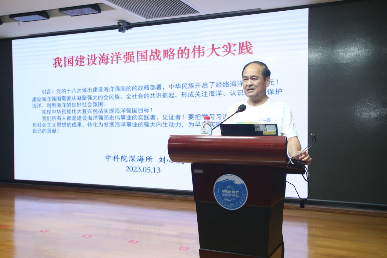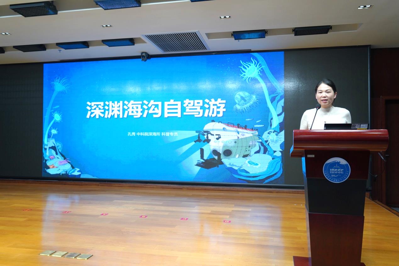 本次活動分為四個場次,每個場次都精心安排了科普講座。劉心成首席顧問為大家講述《我國建設海洋強國戰略的偉大實踐》,劉翠艷研究員帶領大家走出地球,漫游太陽系中其他星體上的海洋世界,程南飛助理研究員生動地向大家展示幾個實驗模擬的有趣現象,科普專員孔秀則帶領大家一同搭乘載人潛水器下潛到馬里亞納海溝的萬米深淵,見識那些千奇百怪的生命。講座現場座無虛席,過道甚至門口擠滿了旁聽生,小朋友們則坐滿講臺周邊。